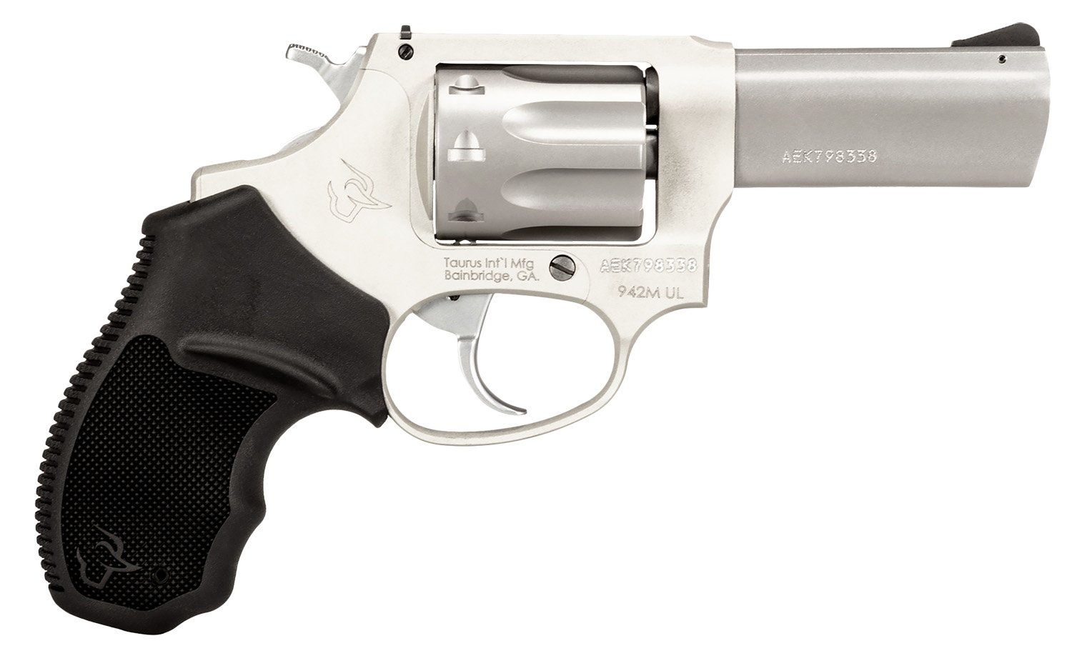 Taurus 2942M039UL 942 Ultra-Lite 22 WMR 8rd 3″ Matte Stainless Finish Barrel, Matte Stainless Finish Cylinder, Stainless Anodized Finish Aluminum Frame & Finger Grooved Black Polymer Grip