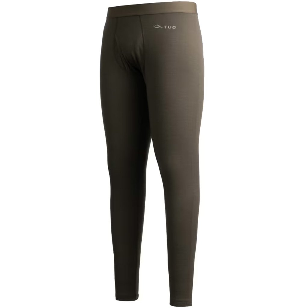 The TUO Kinetic Merino 250 Bottom is a warm and durable base layer built to perform in cold-weather conditions. Crafted from 250g interlock fabric made with 95% 18.5-micron merino wool and 5% spandex, it offers superior natural odor resistance, moisture-wicking, and thermal regulation. The merino wool is spun around a nylon core to enhance elasticity and long-term durability. With flatlock seams for smooth next-to-skin comfort, a covered elastic waistband, and a functional fly, this base layer bottom is ideal for layering beneath outerwear on chilly pursuits.