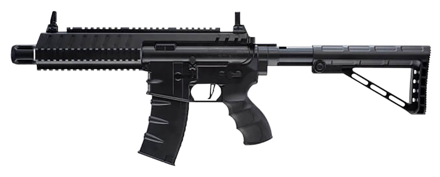 The Umarex Steel Strike Air Gun takes its design cues from a short barreled modern sporting rifle and boasts many of the same features. The Steel Strike uses reliable and easy to find 12 gram CO2 cartridges which are housed in the multi-position stock. Topside are flip up sights and generous sections of accessory rail on the top, sides, and bottom of the upper. The 30rd drop free magazine with 900 BBs in its main reservoir and features an easy to load staging tube for fast re-loads. Plinking at the range is always a blast but the Steel Strike ratchets the fun up to the top of the scale with its 6 round burst mode.