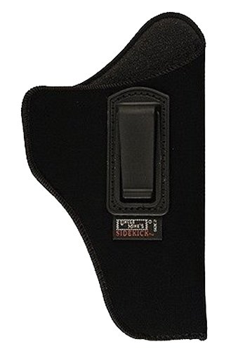 Uncle Mikes Inside the Pants Open Style Holster has ultra-thin four layer laminate no thicker than conventional suede leather holsters. The internal moisture barrier will not transmit perspiration to gun. Fits 4.5-5″ barrel large auto and comes with a retention strap.