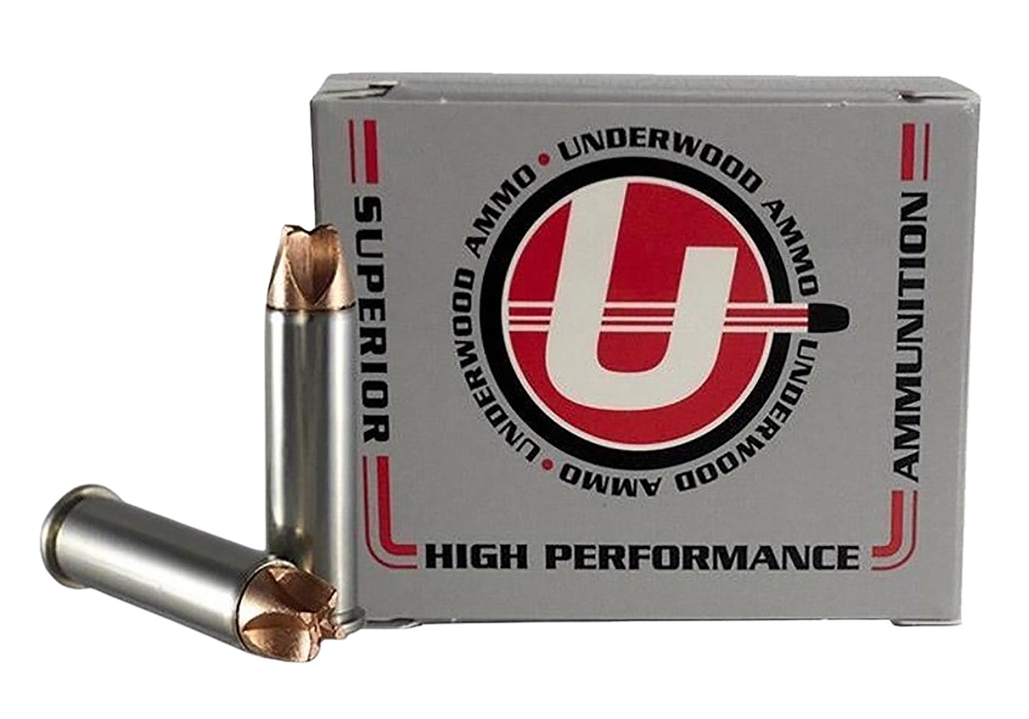 The Xtreme Hunter was born from the popular Xtreme Defender product line. Like the XD, the Xtreme Hunter ammunition has an optimized nose flute. The difference is that weight and attained velocity have been optimized to achieve maximum penetration depth with a permanent wound cavity (PWC). Not only is the PWC over 100% larger than any other expanding bullet, terminal performance is achieved despite being shot through barriers. The solid copper body ensures that thick hide, bone, and any other barrier will have minimal effect on the Permanent Wound Channel. Nickel-plated brass casings, the nickel plating process provides several key benefits, not limited to but including; improved feeding in all actions of firearms enhanced corrosion resistance over traditional brass, improved cosmetics, and ease of cleanup during reloading. Nickel-plated casings will not tarnish like brass during storage or when in contact with foreign materials such as leather, moisture, and other metals. As with all of Underwood Ammo rounds, we utilize flash suppressed powder so that vision will not be compromised if it becomes necessary to use your firearm in low light. This high-performance ammunition is field tested using popular, real firearms that customers are most likely to own out in the real world.