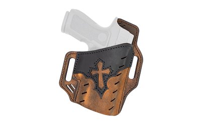 Versacarry’s Guardian holster is perfect for those looking to carry everyday and maintain comfort. This leather holster is two tone black and brown with a cross logo. The holster features 1.5″ belt loops and a forward cant to securely carry your holster provide a smooth draw.