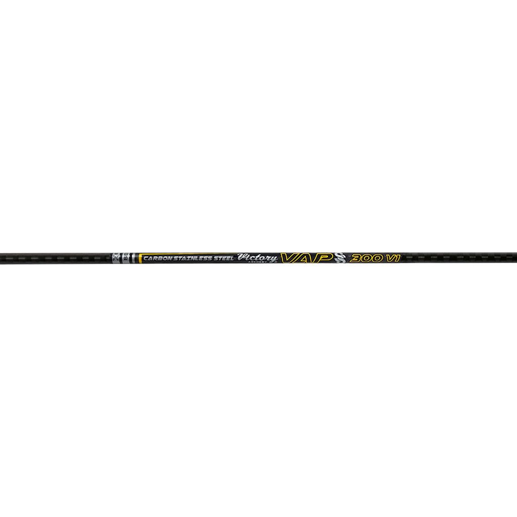 The Victory Vap-SS Elite line of arrow shafts is a micro diameter shaft with stainless steel layers infused into a 90 degree carbon fiber weave arrow that is lighter and faster with a higher FOC designed with accuracy and increased penetration. Features advanced 3K carbon weave for less torque, faster recovery, and tighter spine consistency. Has advanced Nano ceramic arrow coating that improves penetration and easy arrow removal. Straightness tolerance of +- .001” and weight tolerance of +- 0.5 grains. Available in sizes 300 (9.9 GPI), 350 (9.0 GPI), 400 (8.5 GPI). IP nocks and Shok TL aluminum inserts included.