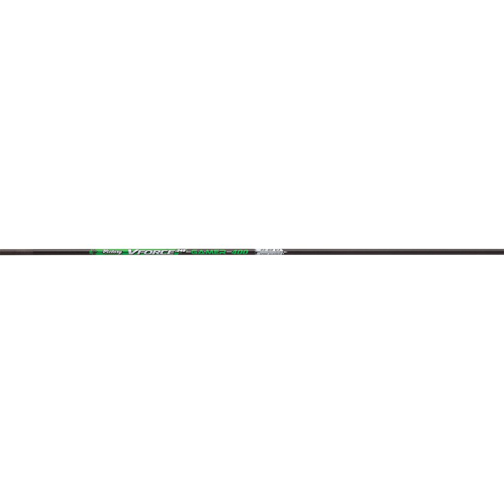 Standard diameter hunting shaft made from high quality carbon composite fibers with ICE coating for easy removal from targets and increased penetration. Straightness tolerance of +-.003” and weight tolerance of +- 0.5 gr. Available in sizes 250 (10.8 GPI), 300 (9.7 GPI), 350 (8.7 GPI), 400 (8.2 GPI), and 500 (6.9 GPI). Includes nocks and VF 22 gr. inserts.