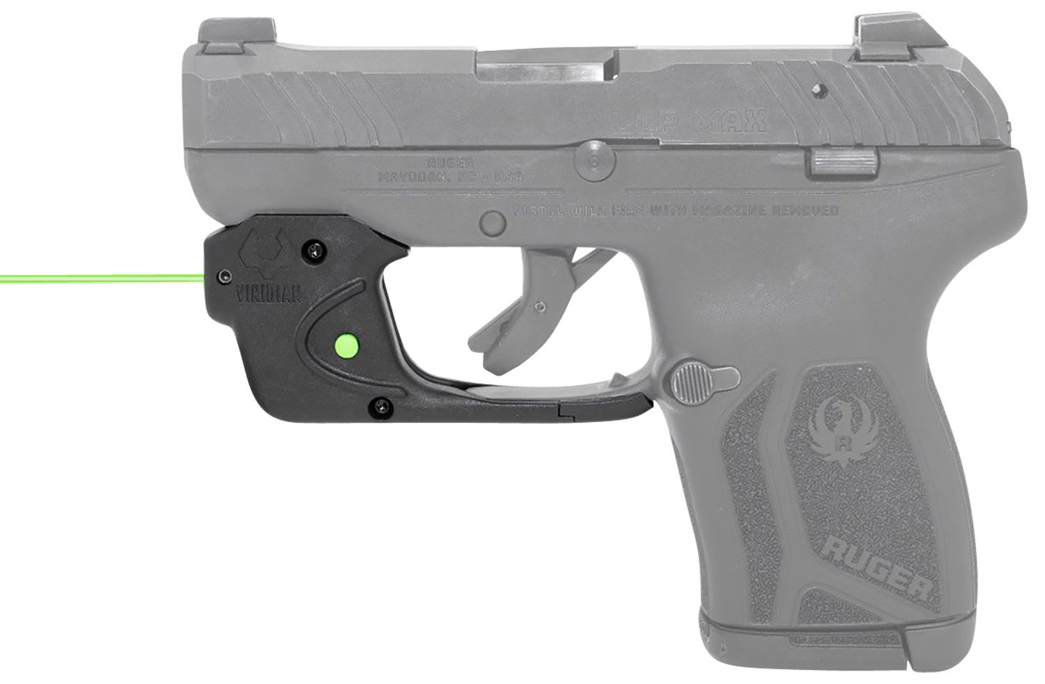 Viridian’s E SERIES laser sight is specifically designed for the everyday conceal and carry owner. The E-Series Green Laser Sights will easily mount to the trigger guard and features an ambidextrous on/off button with a 5-minute auto shut off just like their Red Sight counterparts. Features easy installation onto the trigger guard of your pistol; ambidextrous on/off button; 100 yard range in daylight and 2 miles at night; easy windage and elevation adjustment. Fits the Ruger LCP Max.