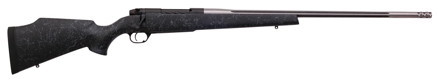 Mark V rifles carry a wealth of features that enhance the shooter’s experience. Light yet strong stocks, crisp Triggertech triggers, highly effective muzzle brakes and premium American-made barrels are just a few of these, all building on the legendary Mark V action. Originally designed as a 9-lug, push-feed action, the Mark V rises head and shoulders above other bolt-action rifles in a number of regards. First and foremost, it has long been considered the strongest action in the world built to harness the increased pressures of Roy Weatherby’s signature cartridges. Another is the Mark V’s lowest-in-class bolt rotation, clocking in at 54. Less rotation allows for quicker reloads and the ability to mount scopes as close to the bore as possible. The forged, one-piece bolt is fluted and has relief ports and a full shroud to protect the user in the case of an ammunition failure. A smooth and silent two-position safety also serves as a bolt lock. The Mark V rifle is guaranteed to shoot a 3-shot group of .99″ or less at 100 yards (SUB-MOA) from a cold barrel when used with Weatherby factory or premium ammunition. TriggerTech’s trigger provides true zero-creep break, extremely short over-travel, and is externally adjustable. No matter which Weatherby Mark V rifle you choose, you’ll know it has been designed with purpose and for maximum performance. The Accumark features a fluted #3 contour barrel, and hand-laid fiberglass stock with aluminum bedding blocks. Built on both 6-Lug, 9-Lug, and left-handed Mark V receivers, the Accumark is one of the most customizable models in the Weatherby line. Ready to put holes through dimes at distance and knock large animals down fast, the most versatile performance hunting rifle on the market.