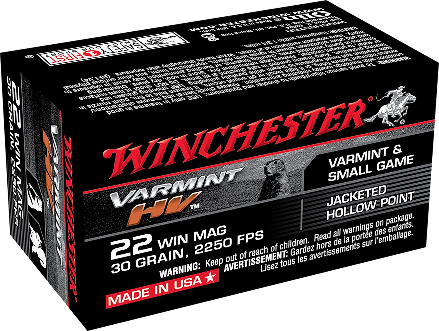 Winchester Ammo S22M2 Varmint HV 22WMR 30gr Jacketed Hollow Point 50 Per Box/40 Case